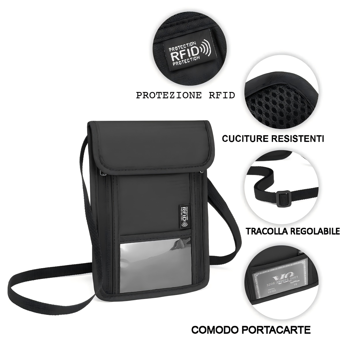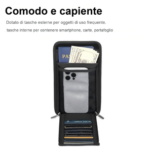Borsa a tracolla con protezione RFID, comoda e spaziosa, con spazio organizzato per riporre smartphone, portafogli, carte e altri piccoli oggetti di uso quotidiano