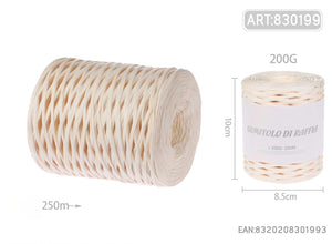 Gomitolo di raffia da 200g, lunghezza: 250m circa, disponibile in diverse colorazioni, ottimo per costruire borse e cappelli